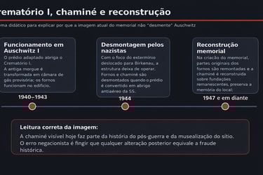 Ou seja: a presença atual da chaminé não “desmente” o Holocausto. Pelo contrário. Ela integra a história material do pós-guerra, da preservação do local e da construção da memória. O que a imagem viral geralmente omite é justamente o essencial: Auschwitz não é um cenário congelado em janeiro de 1945, mas um espaço histórico, investigado, preservado e musealizado desde os anos imediatamente posteriores à libertação.