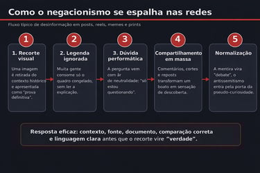 Um dos maiores equívocos do debate público é chamar todo negacionismo de “revisionismo histórico”, como se ele fosse apenas mais uma revisão acadêmica. Não é. Em história, revisar interpretações à luz de novas fontes, novas perguntas e novos métodos faz parte do trabalho normal do historiador. Já o negacionismo opera de outra maneira: ele começa com a conclusão ideológica e depois procura fragmentos, dúvidas fabricadas ou detalhes descontextualizados para sabotar um consenso documental maciço.