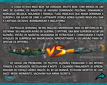 A Luftwaffe (força aérea alemã) tentava derrotar a Grã-Bretanha. Durante o dia, os ingleses resistiam bem: o Spitfire britânico era superior ao Bf 109 alemão. A saída foi mudar de tática: ataques surpresa de madrugada, explorando a escuridão.