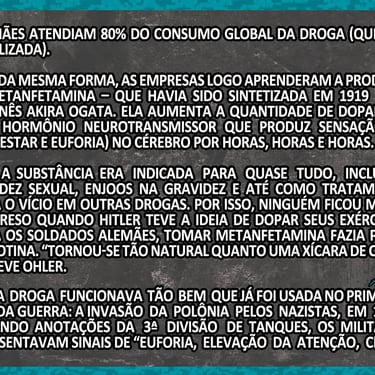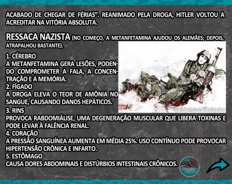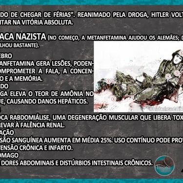 Mesmo com todos esses memes e exageros visuais, o tema é sério: a 2ª Guerra foi também uma guerra química – não só de armas, mas de drogas legais, “remédios milagrosos” e estimulantes distribuídos em escala industrial.