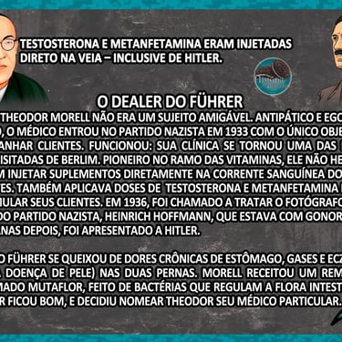 Morell não era exatamente o estereótipo de médico de confiança. Figura antipática, interesseiro, aproximou-se do Partido Nazista nos anos 1930 para ganhar clientes influentes em Berlim. Sua especialidade era aplicar injeções de “vitaminas” e suplementos diretamente na veia de empresários e celebridades.