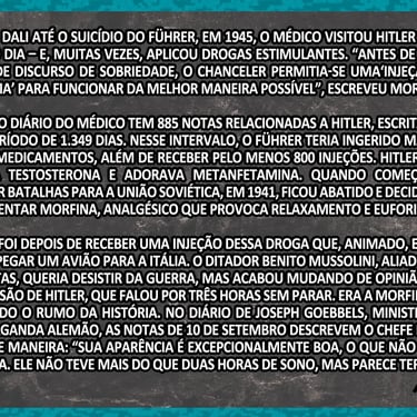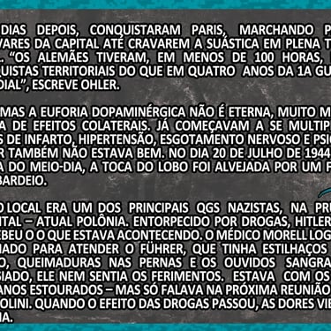 Depois de ler, volta aqui e me conta: o que mais te chocou, o exército dopado ou o nível de dependência química do próprio Führer?