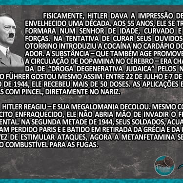 Nas fases finais da guerra, Hitler já apresentava sintomas clássicos de dependência: tremores, alterações bruscas de humor, insônia, crises de paranoia e necessidade de doses cada vez maiores.
